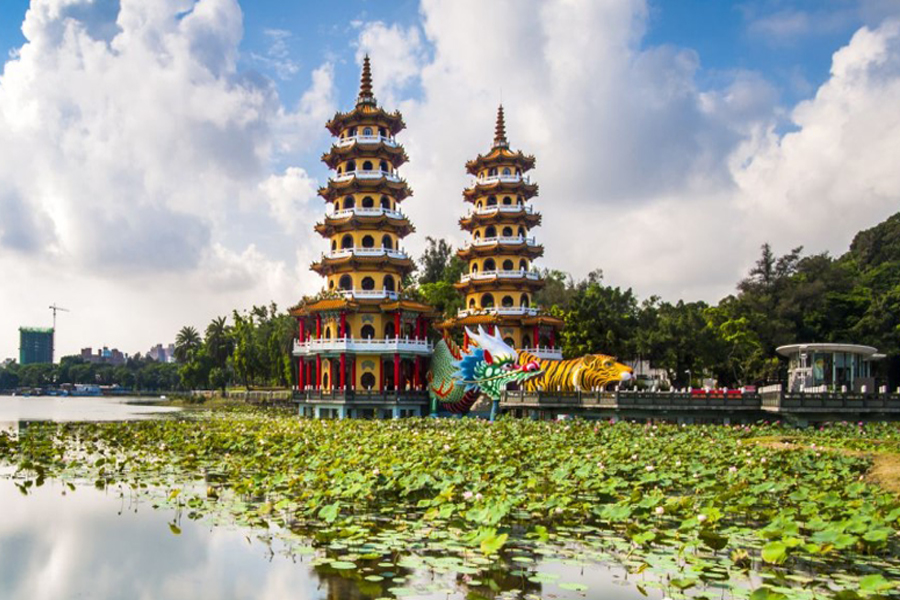 - Tháp Long Hổ - Ao Sen là một hồ nước nhân tạo nhưng là địa điểm du lịch nổi tiếng ở Cao Hùng bởi những cánh hoa sen nở rộ hồng thắm trên mặt hồ cùng với hơn 20 ngôi đền thờ xung quanh hồ nổi tiếng