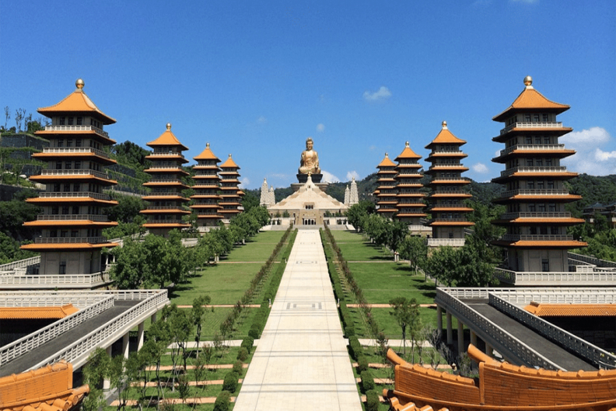 - Phật Quang Sơn Tự – bạn sẽ phải sững sờ với sự hùng vĩ và đồ sộ của các công trình nơi đây. Phật Quang Sơn là nơi hội tụ rất đông đảo tín đồ Phật giáo. Pho tượng Phật sừng sững, nổi bật với nụ cười hiền từ trên nền trời xanh. Đây là pho tượng đồng cao nhất thế giới hiện nay với chiều cao lên đến 108m.