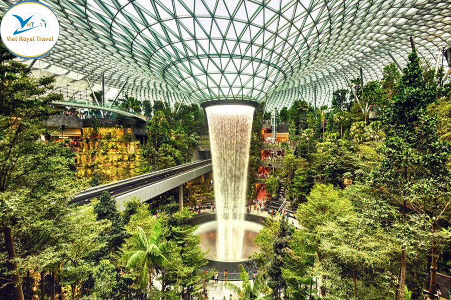 Thác nước Jewel khổng lồ trong sân bay Changi: khu phức hợp Jewel nằm trong nhà ga T1 của sân bay Changgi, là nơi có thác nước trong nhà cao nhất thế giới (cao tới 40m). Quý khách khám phá các điểm tham quan vui chơi lí thú ở công viên Canopy Park như: trải bước theo những con đường mòn trong vườn cây xanh mướt ở Toperator Walk, trượt ống trong những đường trượt khổng lồ ở Discovery Slides, hoặc đắm mình trong những khu vườn sương nhân tạo, mờ ảo Foggy Bowls...Một trải nghiệm thú vị được yêu thích nhất ở đây chính là Sky Net – một mạng lưới khổng lồ gồm những chiếc dây dù cứng đan vào nhau, treo lơ lửng được thiết kế giống như đường đi bộ xung quanh công viên nhưng ở độ cao hơn 25m so với mặt đất, vườn mê cung Hedge Maze, mê cung Mirror Maze... (Chi Phí tự túc)